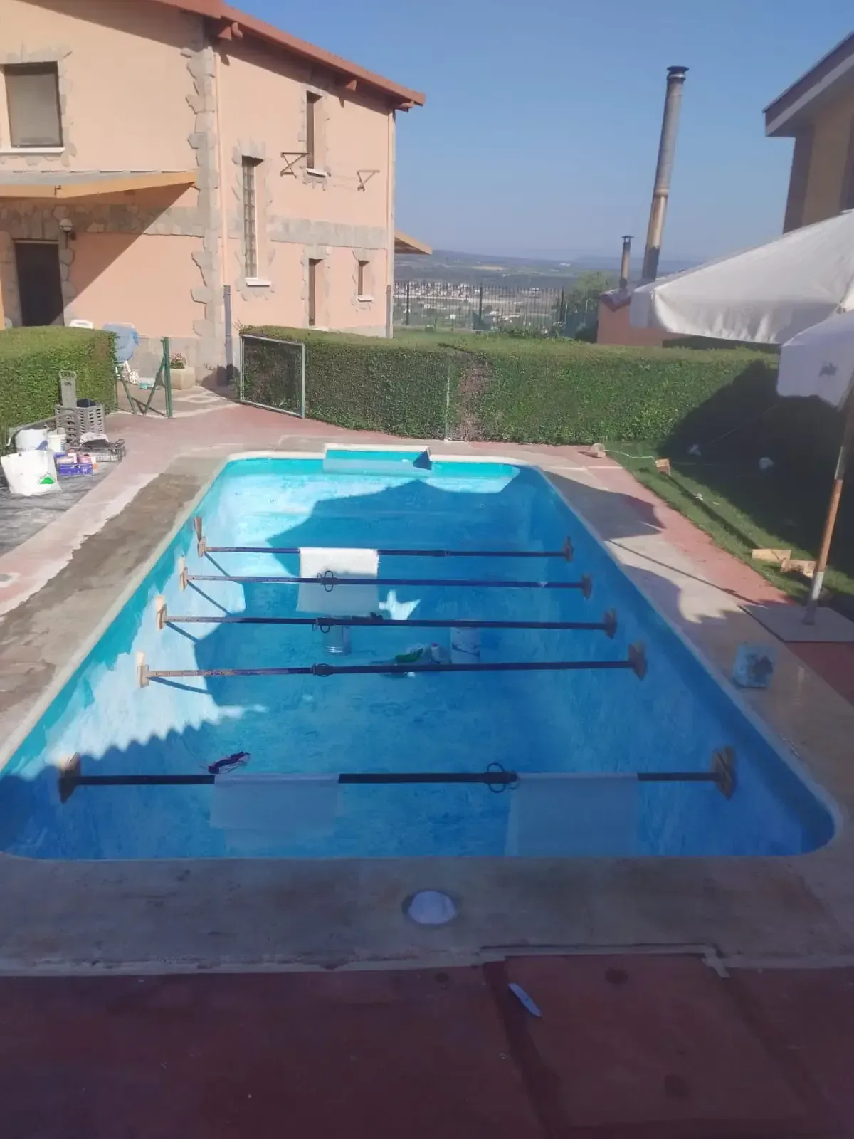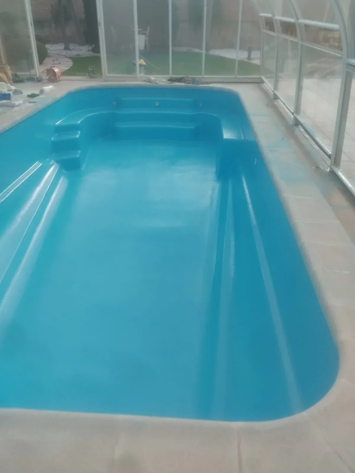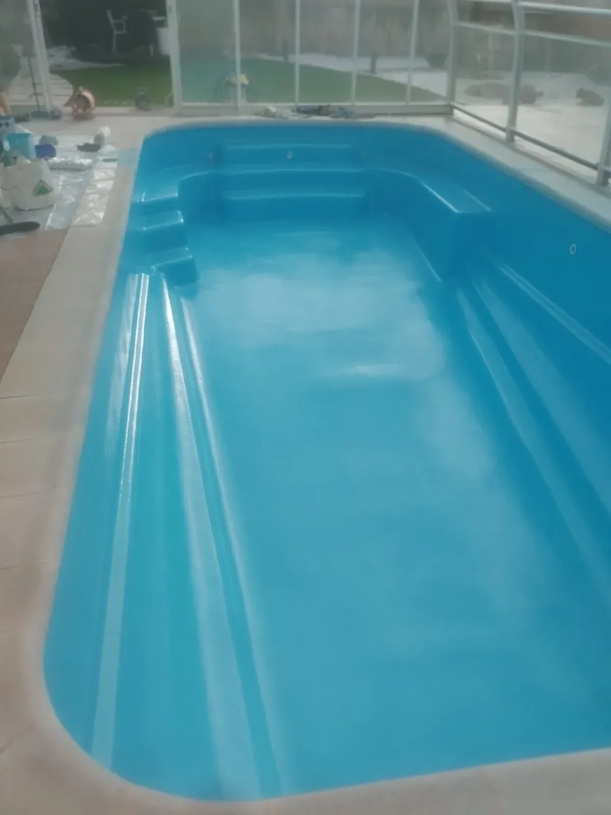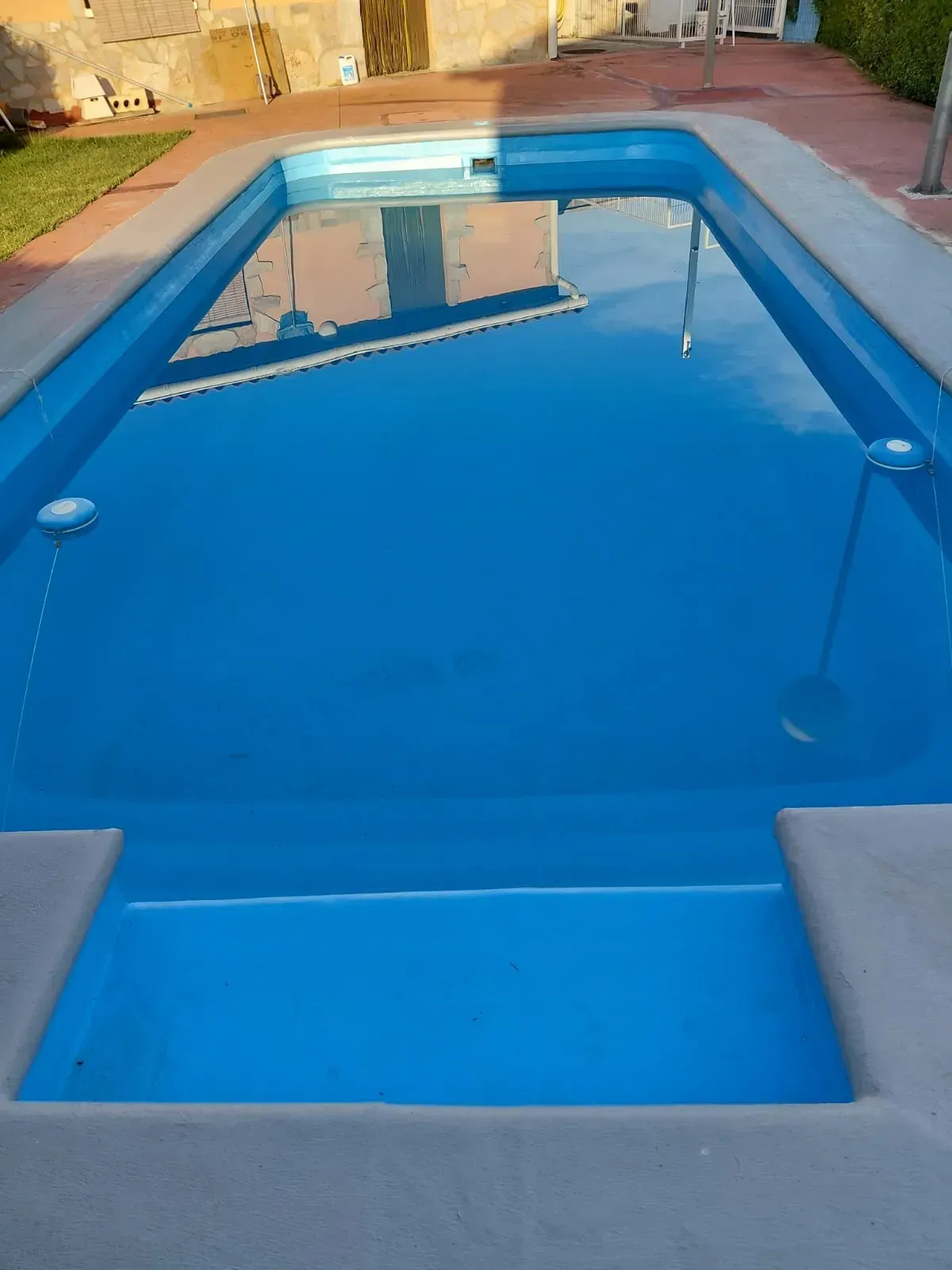 Realizamos el saneado integral de una piscina de poliéster (PRFV) que presentaba desgaste, decoloración y pequeñas fisuras por el paso del tiempo, devolviéndole completamente su funcionalidad y estética en un claro “antes y después”. El trabajo consistió en la preparación y reparación del soporte, refuerzo de las zonas necesarias y aplicación de nuevo acabado protector, garantizando estanqueidad, resistencia y durabilidad. Utilizamos materiales de alta calidad, lo que nos permite trabajar con sistemas específicos para poliéster que aseguran un resultado profesional y una larga vida útil, manteniendo la piscina en perfectas condiciones durante años.