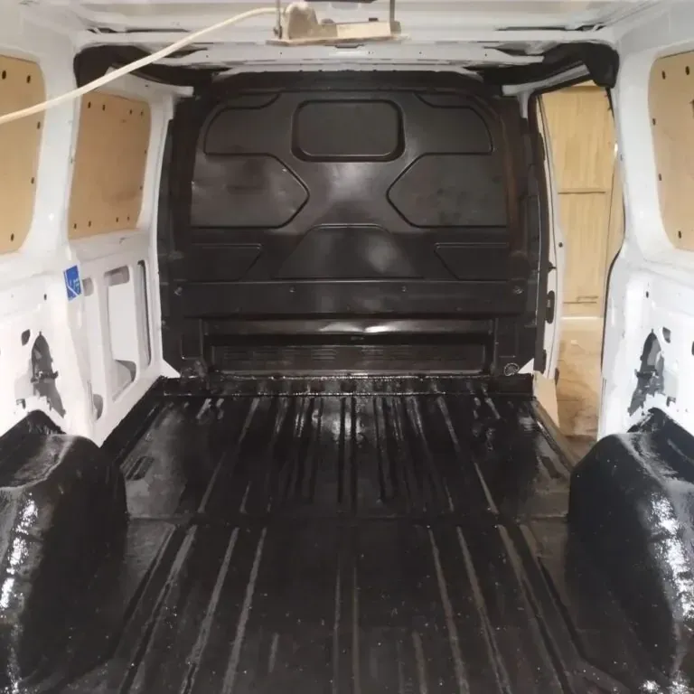 realizamos el revestimiento de la zona de carga en vehículos industriales con poliéster reforzado con fibra de vidrio (PRFV), una solución resistente y totalmente impermeable que protege la estructura original frente a golpes, abrasión y derrames. Este sistema evita daños en la carrocería cuando se transportan materiales o líquidos, facilita la limpieza gracias a su acabado continuo sin juntas y no afecta a la estructura del vehículo. El resultado es una superficie duradera, higiénica y de bajo mantenimiento, ideal para usos profesionales exigentes.